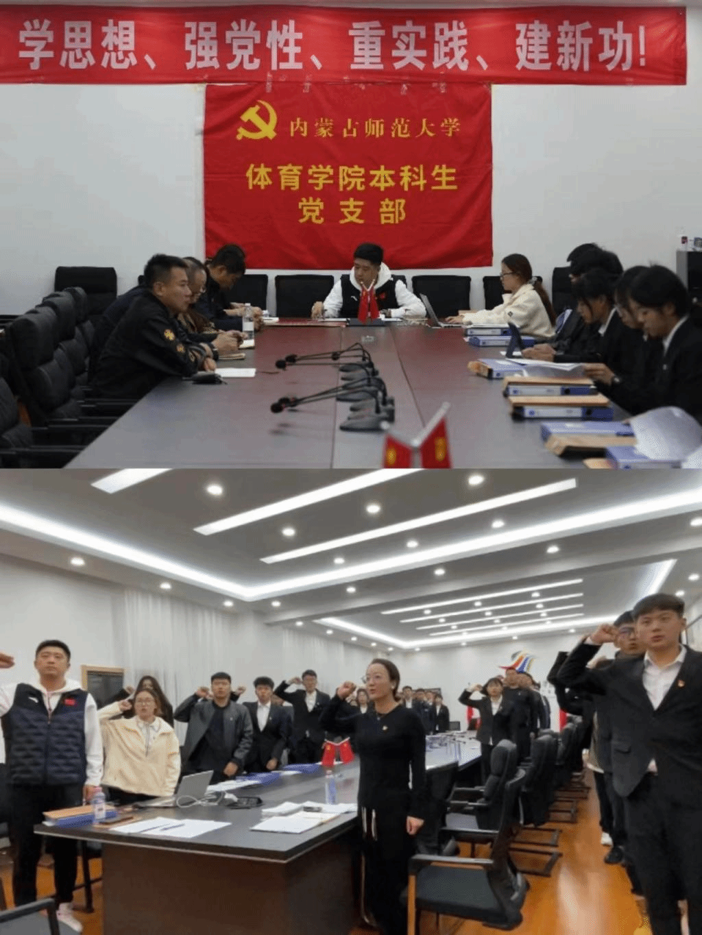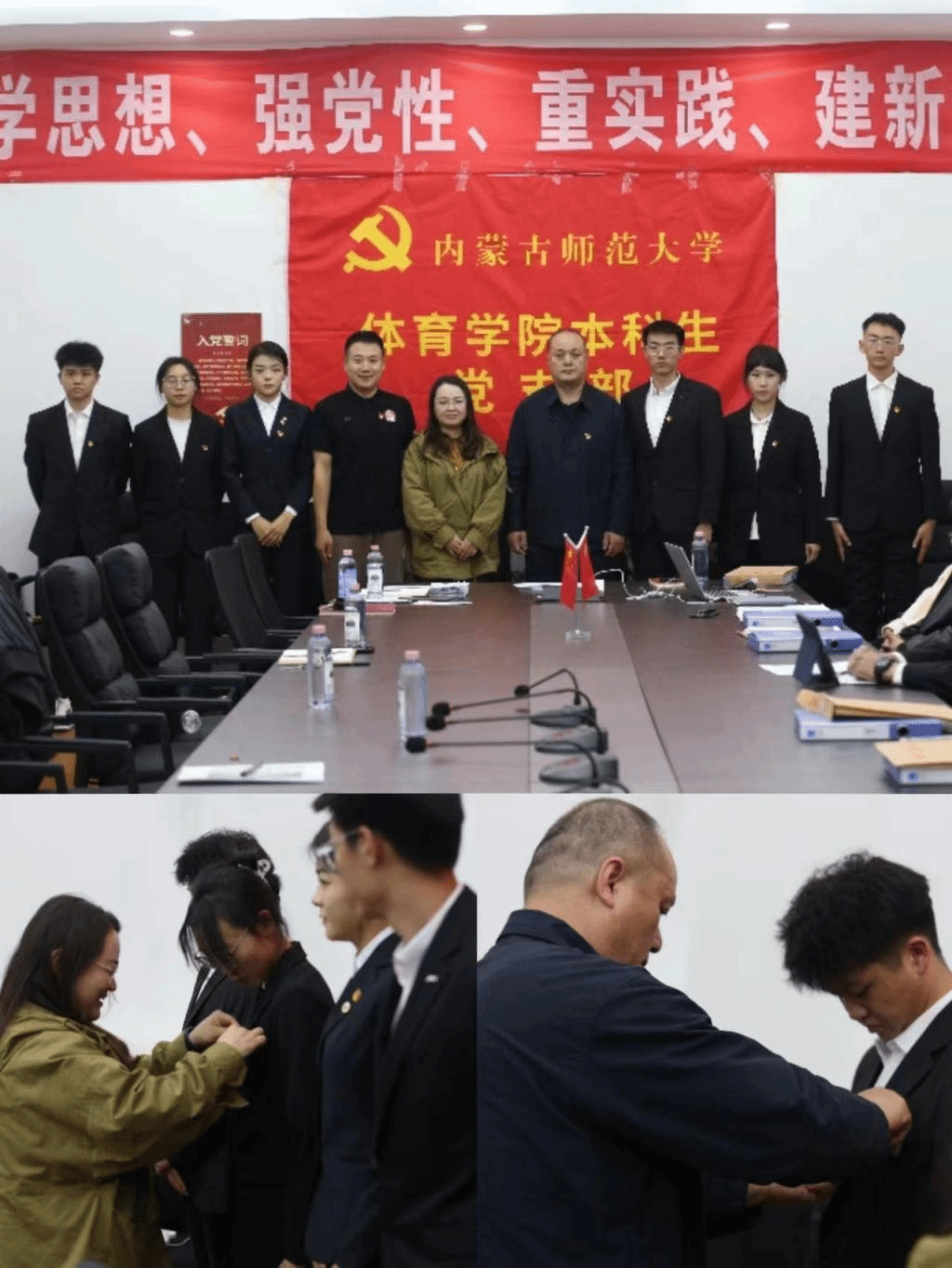 为进一步加强党员队伍建设,凝聚新力量,焕发新活力,10月23日,华体会网页版本科生党支部根据《中国共产党章程》《中国共产党发展党员工作细则》等有关规定召开吸收预备党员大会。学校及学院党委高度重视学生党员的发展工作,学院党委副书记、副院长敖永胜、学院党委组织员石永兴、内蒙古师范大学党委组织部组织科副科长苏丹参加会议。会议由体育学院本科生党支部书记刘晨曦主持。