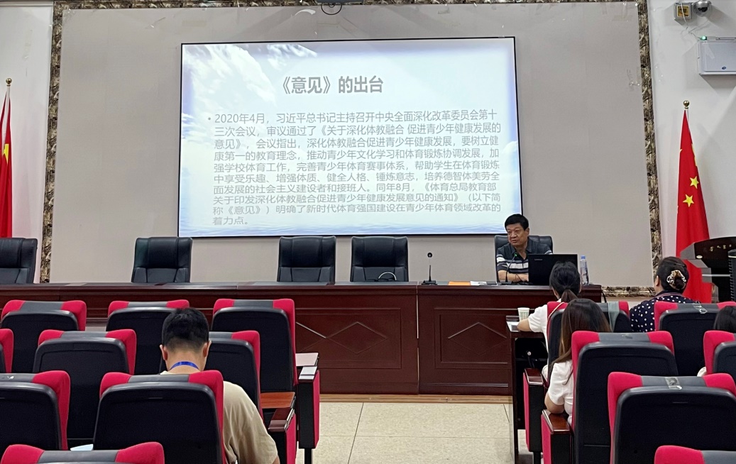 本次研修班为期7天,培训方式:采取集中授课,小组讨论及现场教学等方式。内容包括体育教学课堂规范与实践应用(体育社团、大课间活动优化及设计方案)、学校特色体育活动开展与经验分享等内容。主办单位:贵阳市观山湖区教育局,承办单位:贵州体育职业学院,协办单位:华体会网页版。开班仪式后,体育学院党委书记韩武做了《深入学习贯彻习近平总书记关于体育方面的论述》。随后的课程中李凤新、孟欣欣、殷俊海等多位老师都为学员们带来了精彩演讲!