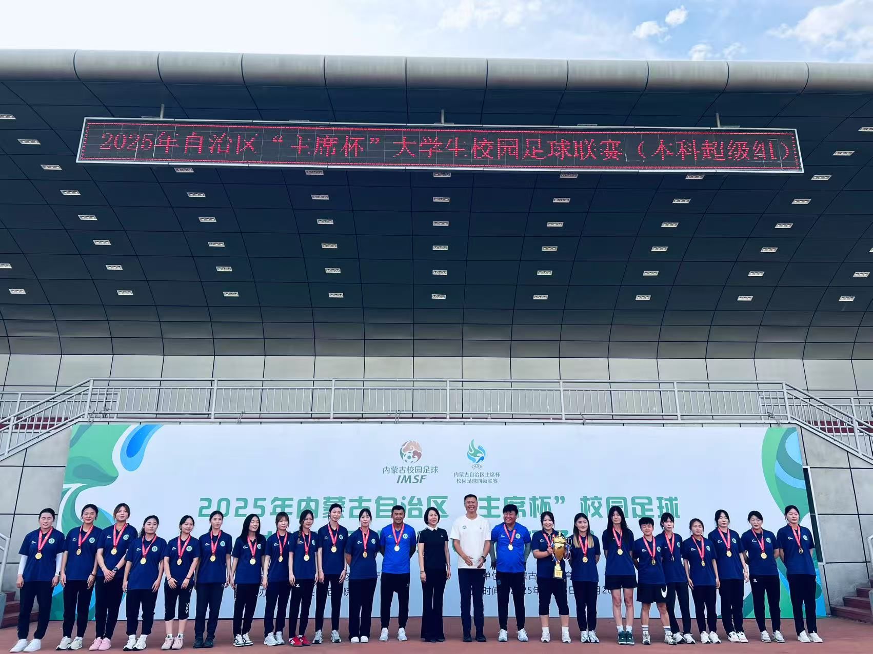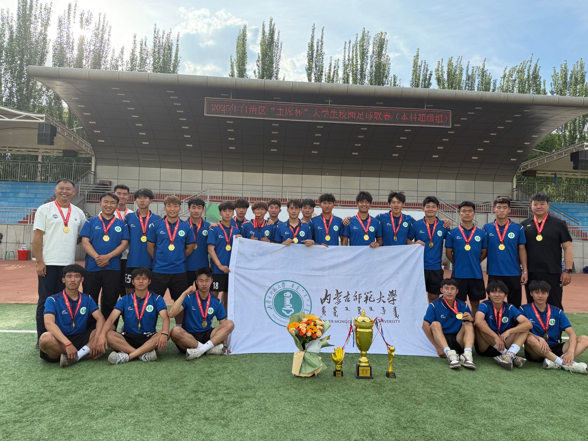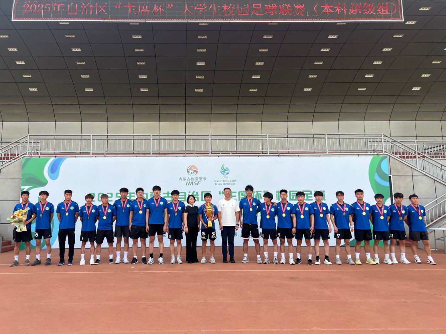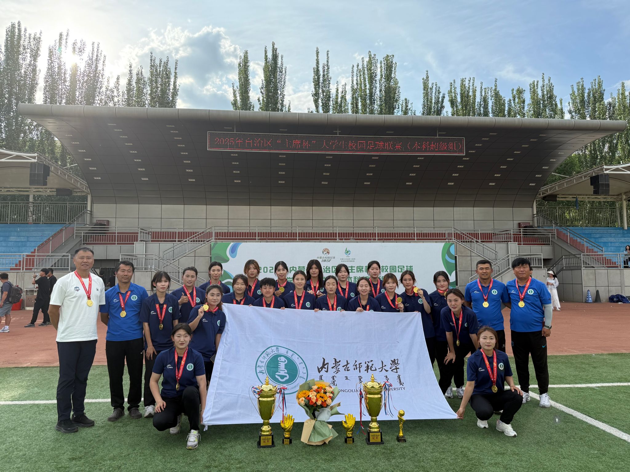 6 20 日,由内蒙古自治区教育厅主办、包头师范学院承办的2025 年内蒙古自治区“主席杯”校园足球大学生足球联赛(本科超级组)在包头师范学院落下帷幕。经过多轮激烈角逐,我校足球队超级组男队与女队凭借顽强的毅力、勇于拼搏的斗志及团结一心的协作精神,最终包揽男子组、女子组冠军。